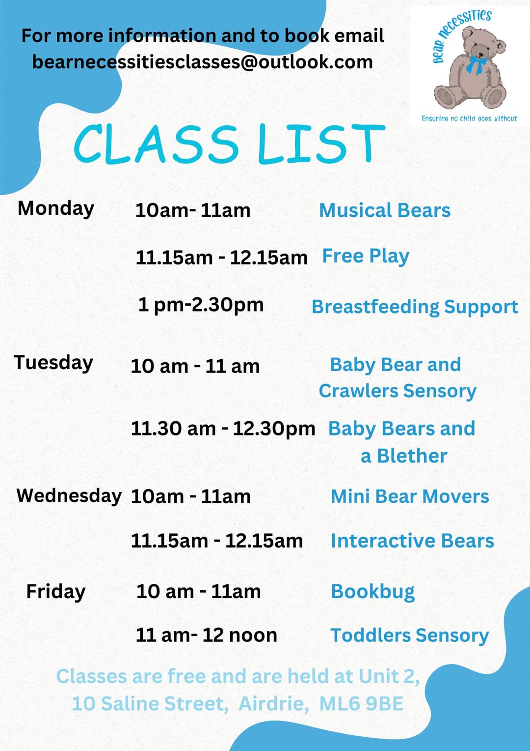 For any mums needing breast feeding help in Lanarkshire. This group runs every Monday in Bear Necessities 10 Saline street Airdrie ML69BE and is open to everyone. Angela is a Lactation consultant and is awesome too !!! Hope to see you there.