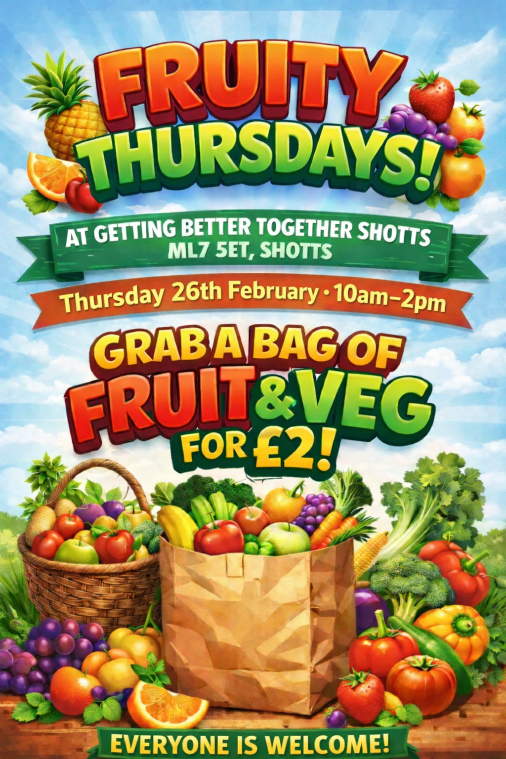 Join us at Getting Better Together, Shotts (ML7 5ET) for a fresh, tasty, and affordable way to fill your kitchen with goodness!